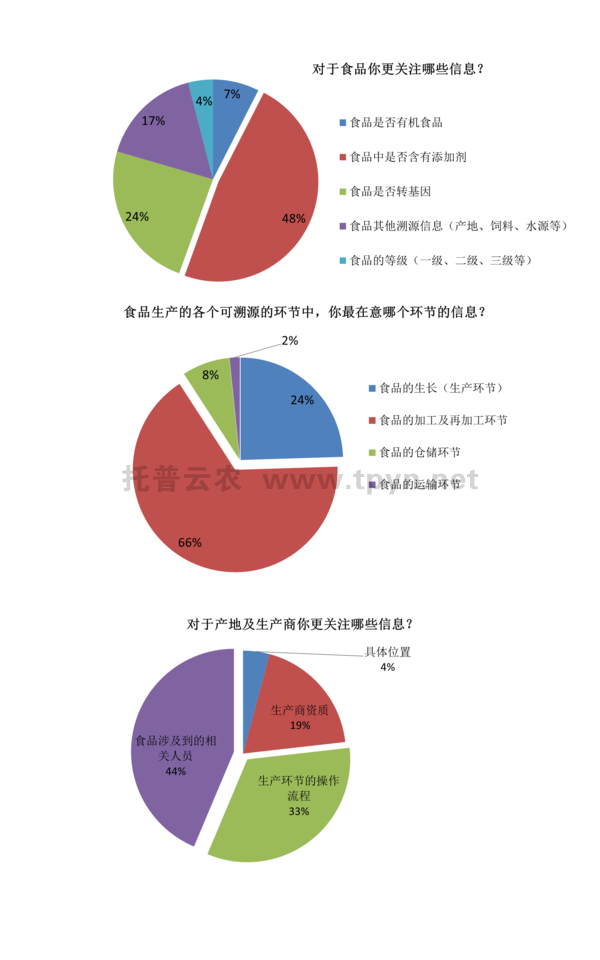 除此之外,也有不少人表示對(duì)食物生長(zhǎng)信息比較在意。食品中是否含有添加劑、是否轉(zhuǎn)基因等信息也是人們關(guān)注的重點(diǎn)。對(duì)于食品生產(chǎn)地和生產(chǎn)商,人們更關(guān)注生產(chǎn)(生長(zhǎng))環(huán)節(jié)的操作流程和食品涉及到的相關(guān)人員的信息。
