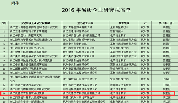 4月22日,浙江省科技廳公布了2016年“省級企業(yè)研究院”名單,經(jīng)省內(nèi)各市、縣(市、區(qū))推薦、專家評審、公示,確定“托普云農(nóng)智慧農(nóng)業(yè)研究院”等153家企業(yè)研究院為省級企業(yè)研究院。
