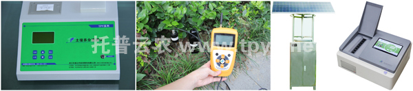 圖為:土壤養(yǎng)分速測儀、土壤水分測定儀、交直流兩用蟲情測報燈、農(nóng)藥殘留速測儀