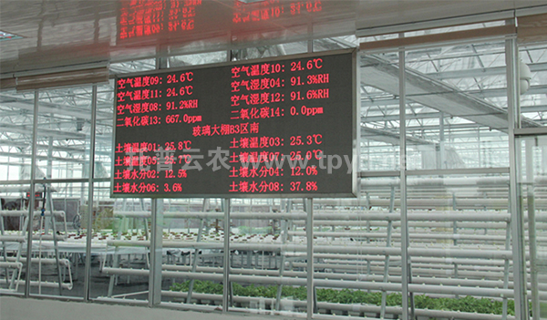 智慧農(nóng)業(yè)溫室大棚信息展示屏用于展示農(nóng)業(yè)大棚內各無線傳感器采集的環(huán)境數(shù)據(jù)和現(xiàn)場場景;同時展示屏也是展示智慧農(nóng)業(yè)的一個窗口。溫室大棚無線監(jiān)測系統(tǒng)實現(xiàn)了對影響農(nóng)作物生長的環(huán)境傳感數(shù)據(jù)實時監(jiān)控智能調節(jié),采集現(xiàn)場的傳感信號包括:空氣溫濕度、光照、土壤溫度、CO2 濃度、土壤水分等,并實時準確的輸出指令智能控制包括大棚風機、微噴罐、滴灌、卷簾機、補光燈、CO2 發(fā)生器、CO2風機等現(xiàn)場設備。同時支持遠程無線信息傳輸功能,可配專用的攝像裝置,實現(xiàn)對現(xiàn)場農(nóng)作物和環(huán)境真實狀況呈現(xiàn)。