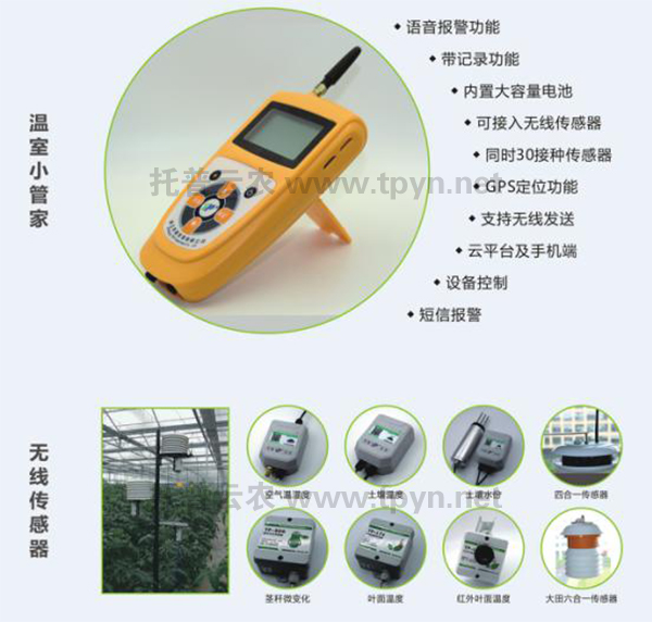 傳感器包括無線空氣溫濕度傳感器、光合有效輻射傳感器、傳感器、超高頻RFID讀卡器、攝像頭等。