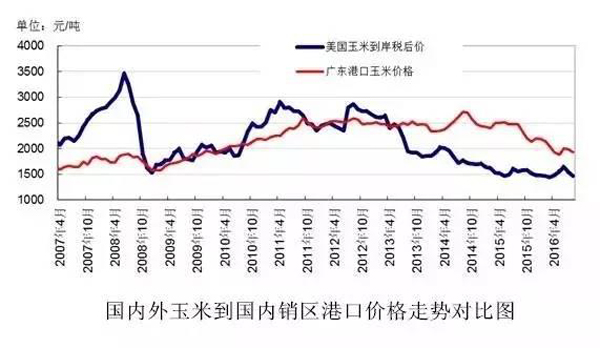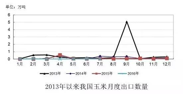 海關(guān)數(shù)據(jù)顯示,7月份我國玉米出口量為50噸,8月份出口420噸。2015/16年度以來累計出口0.38萬噸,同比下降66.55%。近年來國內(nèi)玉米出口維持下降趨勢。由于頭號出口大國美國玉米下一年度預(yù)計豐產(chǎn),且出口報價較低,2016/17年度我國玉米出口將非常有限。