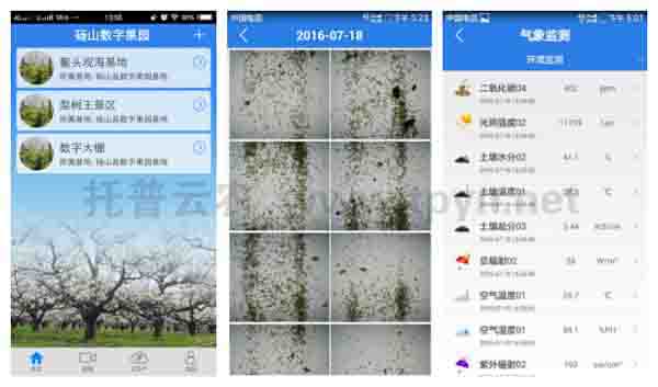 碭山“數(shù)字果園”的農(nóng)業(yè)物聯(lián)網(wǎng)平臺正是由浙江托普云農(nóng)科技股份有限公司(以下簡稱“托普云農(nóng)”)負責搭建的。托普云農(nóng)綜合管理云平臺涵蓋“數(shù)字果園”生長環(huán)境數(shù)據(jù)采集系統(tǒng)、視頻遠程可視化系統(tǒng)、多功能預(yù)警系統(tǒng)、農(nóng)產(chǎn)品質(zhì)量安全追溯系統(tǒng)、中央指揮系統(tǒng)、手機APP等。