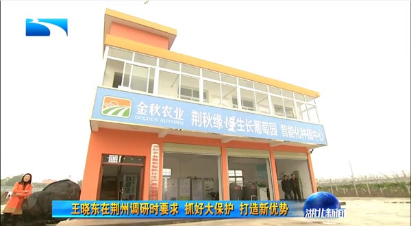 湖北省委副書記、代省長王曉東在荊州市市委書記李新華、市長楊智等領(lǐng)導陪同下蒞臨金秋農(nóng)業(yè)智能化葡萄示范基地調(diào)研現(xiàn)代農(nóng)業(yè)發(fā)展情況。饒有興趣的參觀了"智能化中心"水肥一體化設施,了解托普云農(nóng)水肥一體化的精準生產(chǎn)過程。