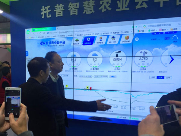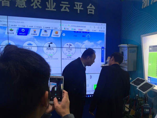 11月26日,浙江省人大常委會黨組書記、副主任茅臨生參觀托普云農展位。茅臨生饒有興致地參觀了托普云農展位的各區(qū)域,詳細詢問了托普云農農業(yè)“四情”監(jiān)控系統(tǒng)、設施農業(yè)監(jiān)控系統(tǒng)、水肥一體化監(jiān)控系統(tǒng)、智慧農業(yè)云平臺等系統(tǒng)平臺的相關工作原理和實施效果。茅臨生還來到儀器展示區(qū),由托普云農展區(qū)負責人為其介紹了傳感器、土壤墑情監(jiān)控系統(tǒng)硬件、農藥殘留速測儀等智能硬件設備。這次參觀,充分感受到茅臨生對浙江智慧農業(yè)發(fā)展的關注和支持;鼓舞了托普云農員工的士氣,激發(fā)了大家的工作熱情,托普云農將繼續(xù)為浙江省現(xiàn)代農業(yè)建設貢獻力量。