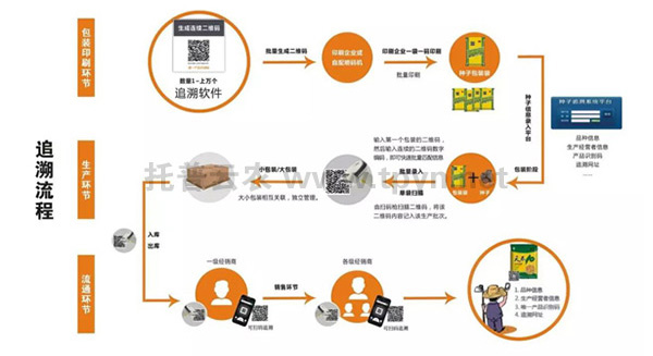 托普云農(nóng)農(nóng)作物種子標(biāo)簽二維碼追溯系統(tǒng)的追溯流程主要分為:包裝印刷環(huán)節(jié)、生產(chǎn)環(huán)節(jié)、流通環(huán)節(jié)、追溯環(huán)節(jié)四大環(huán)節(jié)。
