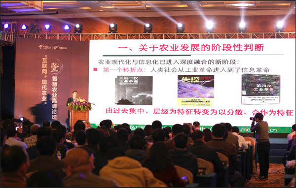 大家早上好。今天的高峰論壇很有創(chuàng)新,大家發(fā)現了沒有,互聯網+現代農業(yè),立足當下,后邊還跟著智慧農業(yè),是發(fā)展目標,跟中央文件,直接打在了現代農業(yè)后面,+放在了上面很有創(chuàng)新。