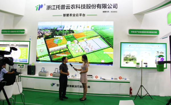 托普云農(nóng)副總經(jīng)理朱旭華(左一)在接受CCTV-7記者采訪