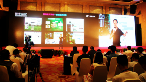 托普云農(nóng)副總經(jīng)理朱旭華在“創(chuàng)未來(lái)”軟件及科技創(chuàng)新產(chǎn)品發(fā)布會(huì)上介紹農(nóng)業(yè)四情監(jiān)測(cè)系統(tǒng)