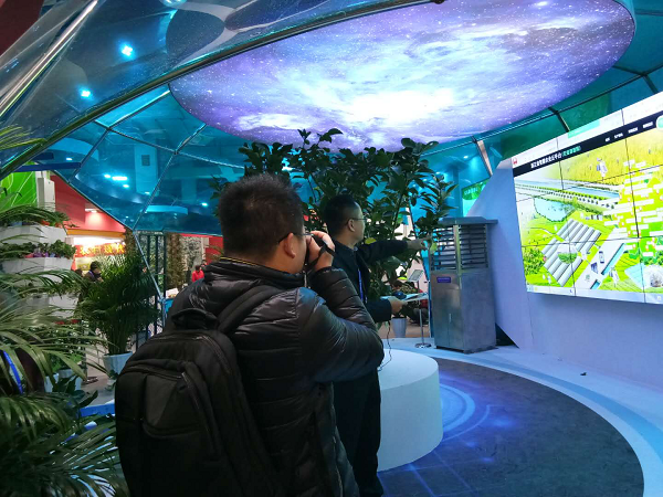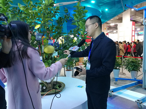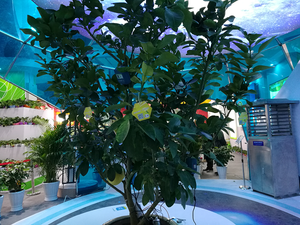 展會(huì)現(xiàn)場(chǎng)掛上傳感器的文旦樹(shù)