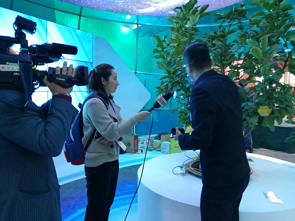 “在這棵文旦樹(shù)上,我們安裝了無(wú)線葉面溫度傳感器、光照強(qiáng)度傳感器、果實(shí)膨大傳感器。通過(guò)這些傳感器采集傳輸?shù)臄?shù)據(jù),我們就能知道整個(gè)樹(shù)的生長(zhǎng)秘密”。展會(huì)現(xiàn)場(chǎng),現(xiàn)代農(nóng)業(yè)與信息化的互融發(fā)展,吸引浙江衛(wèi)視、杭州電視臺(tái)、蕭山日?qǐng)?bào)、舟山電視臺(tái)、金華電視臺(tái)等記者前來(lái)采訪。