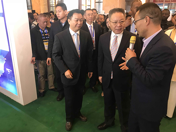 托普云農(nóng)董事長陳渝陽與海南省省委副書記、省長沈曉明就智慧農(nóng)業(yè)云平臺進(jìn)行交流