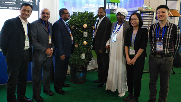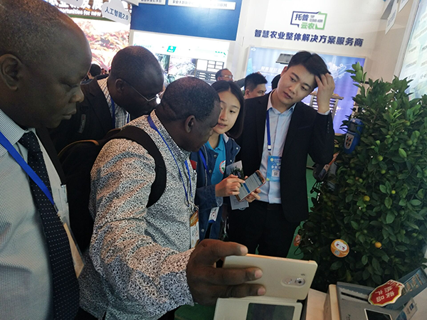 農(nóng)業(yè)信息化是農(nóng)業(yè)現(xiàn)代化的標(biāo)志,為此海南集中優(yōu)勢積極開展海南特色農(nóng)產(chǎn)品的電商促銷、農(nóng)產(chǎn)品質(zhì)量安全追溯以及農(nóng)業(yè)的信息化服務(wù)。在海南,瓜果種類資源豐富多樣。為提升現(xiàn)場參展人員的農(nóng)產(chǎn)品質(zhì)量安全溯源體驗(yàn),托普云農(nóng)還將橘樹搬進(jìn)展區(qū)。分布在展區(qū)的兩棵橘子樹,更是獲得國外友人的好奇與關(guān)注。通過手機(jī)掃描二維碼,便能查看到橘子的光照溫度、土壤溫濕度等生長環(huán)境信息。如此智能化的操作,讓國際友人贊嘆不已。