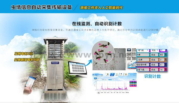 智慧型蟲情測報燈是新一代圖像識別式蟲情測報工具,可全天候工作。在無人監(jiān)管的情況下,系統(tǒng)運用物聯(lián)網(wǎng)、互聯(lián)網(wǎng)、人工智能、大數(shù)據(jù)等技術(shù)自動采集、傳輸、分析、存儲和展示蟲情數(shù)據(jù),并提供自動化和智能化的分析和管理決策數(shù)據(jù)。通過電腦、手機等終端設(shè)備,便可對作物病蟲害實行遠(yuǎn)程實時監(jiān)測、在線識別、自動計數(shù),是植保人員的“千里眼”和“聽診器”。智慧型蟲情測報燈亦是植物保護(hù)提升工程的重要智能裝備,它與農(nóng)作物病蟲害實時監(jiān)控物聯(lián)網(wǎng)設(shè)備、蟲情信息自動采集傳輸設(shè)備、農(nóng)田小氣候自動采集傳輸設(shè)備、農(nóng)作物病菌孢子自動捕捉培養(yǎng)系統(tǒng)等設(shè)備配套使用,是農(nóng)作物病蟲疫情監(jiān)測點建設(shè)中必不可少的智能測報工具。
