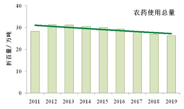 病蟲害是危害糧食安全的主要因素之一,目前針對病蟲害防治仍然以化學(xué)農(nóng)藥為主。但是近年來,由于農(nóng)業(yè)部啟動實(shí)施《化肥農(nóng)藥使用量零增長行動方案》,化學(xué)農(nóng)藥使用的總用量持續(xù)下降。2011—2019年農(nóng)藥使用總量(折百量)由31.3萬噸下降到26.3萬噸。2020年我國農(nóng)藥使用總量為26萬噸左右(折百量,估測值)。預(yù)計2021年農(nóng)藥使用量需求與2020年基本持平。