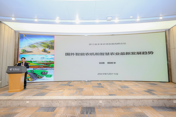 農(nóng)業(yè)強國開局之年,浙江省以先鋒之姿,示范引領(lǐng)數(shù)字鄉(xiāng)村建設(shè),堅持農(nóng)業(yè)農(nóng)村現(xiàn)代化一體推進(jìn)。浙江省政協(xié)原副主席周國輝出席會議,闡述了我省全面建設(shè)未來農(nóng)場的宏大愿景。農(nóng)業(yè)農(nóng)村部信息中心主任王小兵為未來農(nóng)場的建設(shè)發(fā)展提出寶貴意見。浙江省供銷合作社聯(lián)合社理事會副主任郭峻、《小康》雜志社副社長賴惠能分別發(fā)表致辭,分享工作經(jīng)驗,解碼現(xiàn)代農(nóng)業(yè)創(chuàng)新發(fā)展新路徑、新模式。浙江大學(xué)數(shù)字農(nóng)業(yè)農(nóng)村研究中心主任何勇、浙江大學(xué)生物系統(tǒng)工程與食品科學(xué)學(xué)院教授李正龍分別作《國外智能農(nóng)機和智慧農(nóng)業(yè)最新發(fā)展趨勢》、《農(nóng)業(yè)綠色低碳發(fā)展的創(chuàng)新路徑》專題報告。