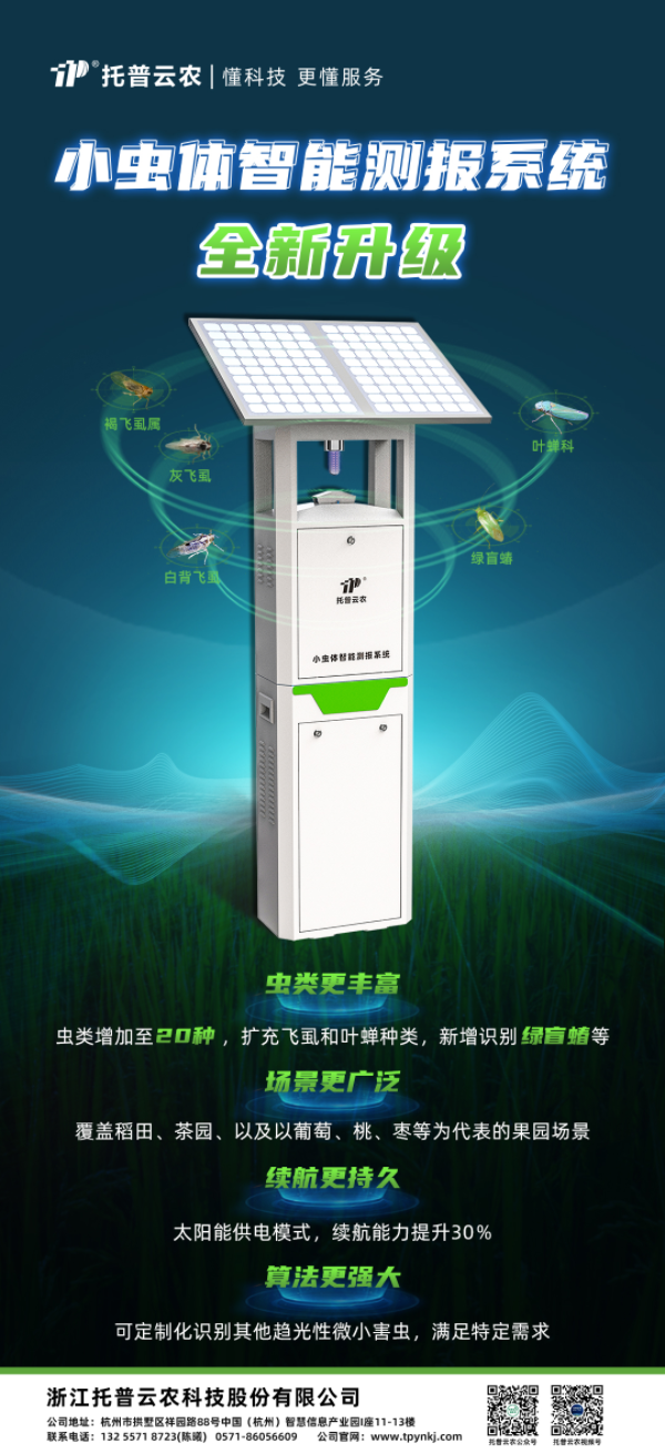 我國是農(nóng)作物生產(chǎn)大國,同時(shí)也是病蟲災(zāi)害多發(fā)的國家。當(dāng)前,氣候條件和農(nóng)業(yè)耕作方式的變化、病蟲害發(fā)生規(guī)律的復(fù)雜化都使得我國植保工作面臨新的課題。托普云農(nóng)作為國內(nèi)領(lǐng)先的數(shù)字農(nóng)業(yè)綜合解決方案服務(wù)商,多年來厚植愛農(nóng)情懷并不斷實(shí)踐,堅(jiān)持用數(shù)字技術(shù)和數(shù)據(jù)服務(wù)賦能種植業(yè)和產(chǎn)業(yè)的高質(zhì)量發(fā)展。未來,托普云農(nóng)將繼續(xù)秉承“用科技改變傳統(tǒng)農(nóng)業(yè),用服務(wù)締造美好生活”的使命,將新一代信息技術(shù)與植保測報(bào)深度融合,持續(xù)升級(jí)改進(jìn)測報(bào)工具,以市場痛點(diǎn)和用戶需求為抓手,進(jìn)一步對(duì)小蟲體智能測報(bào)系統(tǒng)進(jìn)行改進(jìn)和創(chuàng)新,拓寬病蟲害測報(bào)的應(yīng)用場景和領(lǐng)域,為構(gòu)建我國植保數(shù)字化體系貢獻(xiàn)更多智慧與力量。